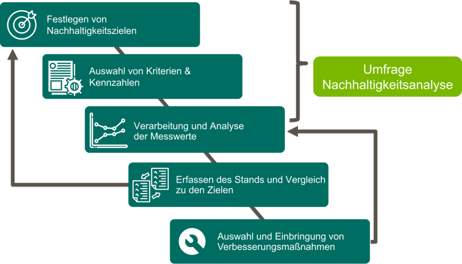 Der Fragebogen richtet sich an alle Mitarbeiterinnen und Mitarbeiter von Industrieunternehmen, die sich mit Nachhaltigkeitsanalysen oder Nachhaltigkeitsreporting im Unternehmen beschäftigen oder darin involviert sind.